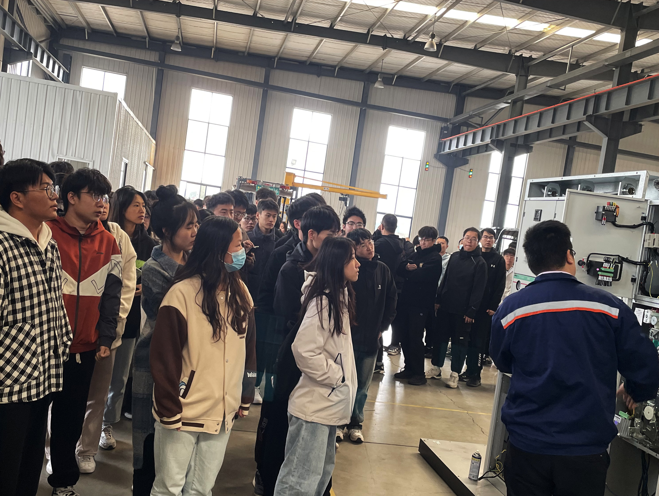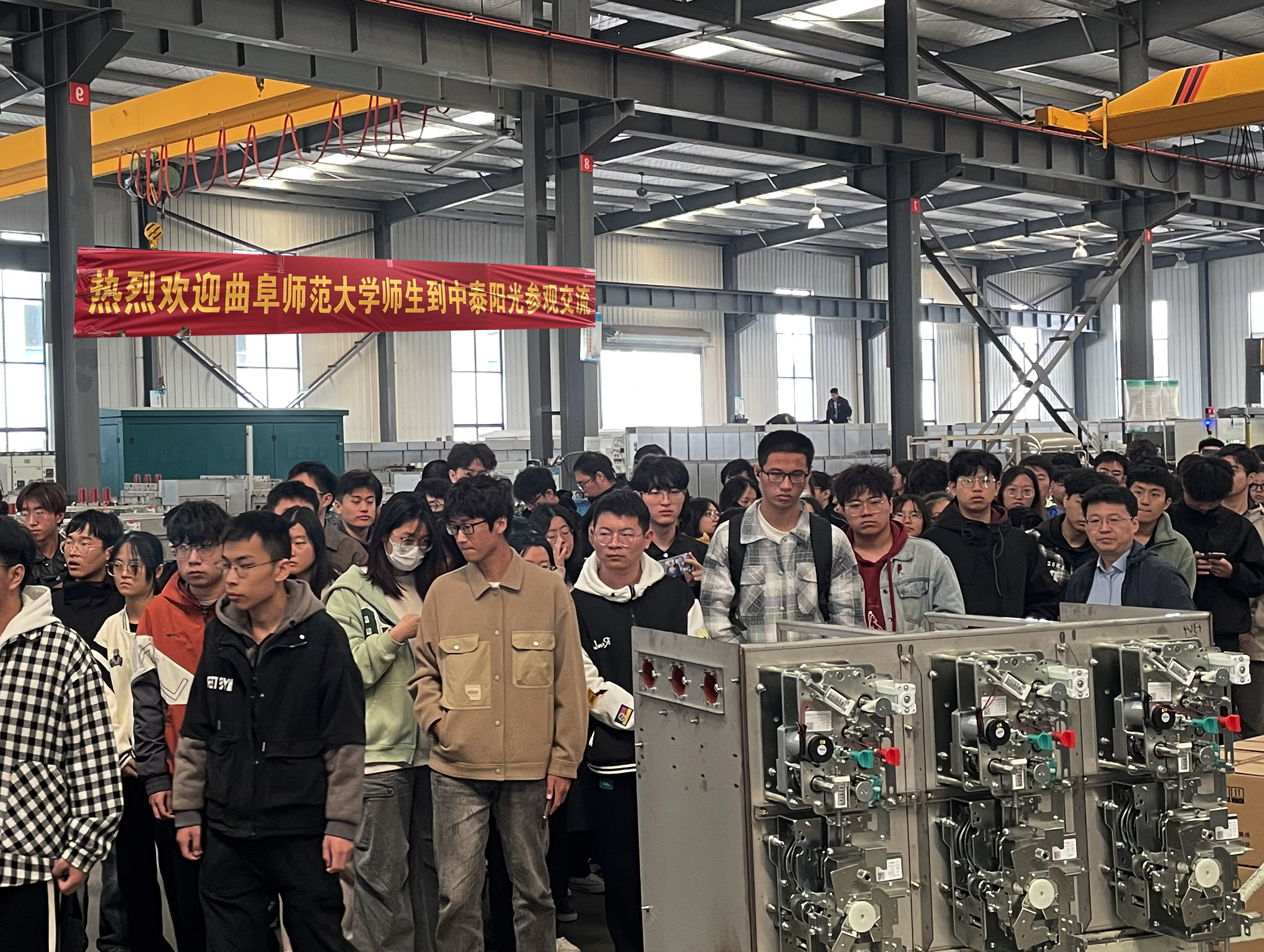 2023年11月9日曲阜師范大學工學院2021級自動化、電氣專業(yè)的200余名大學生到我司生產(chǎn)基地見習參觀。